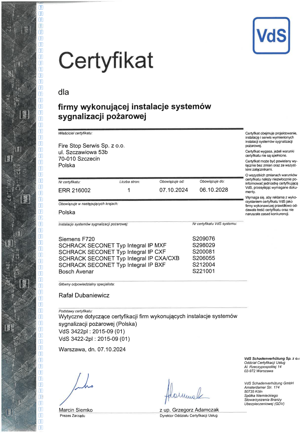 i doradztwa w systemach ochrony przeciwpożarowej.