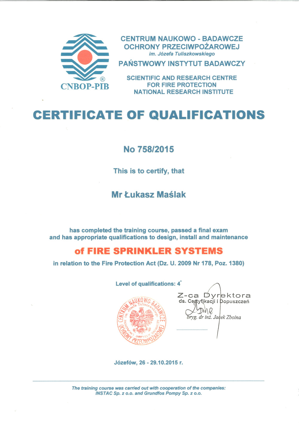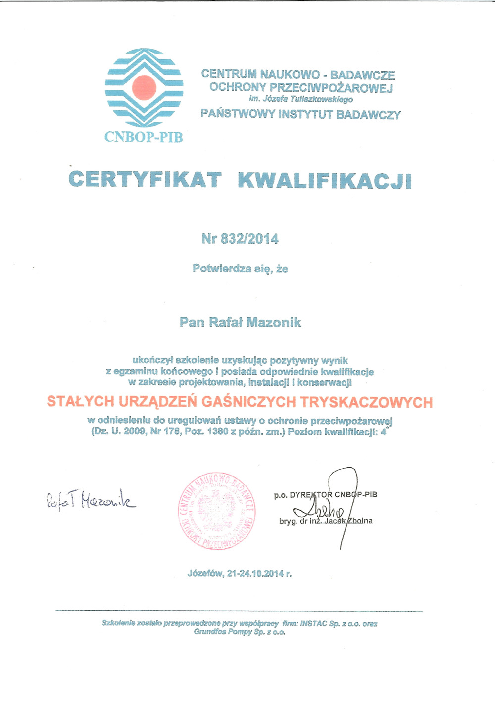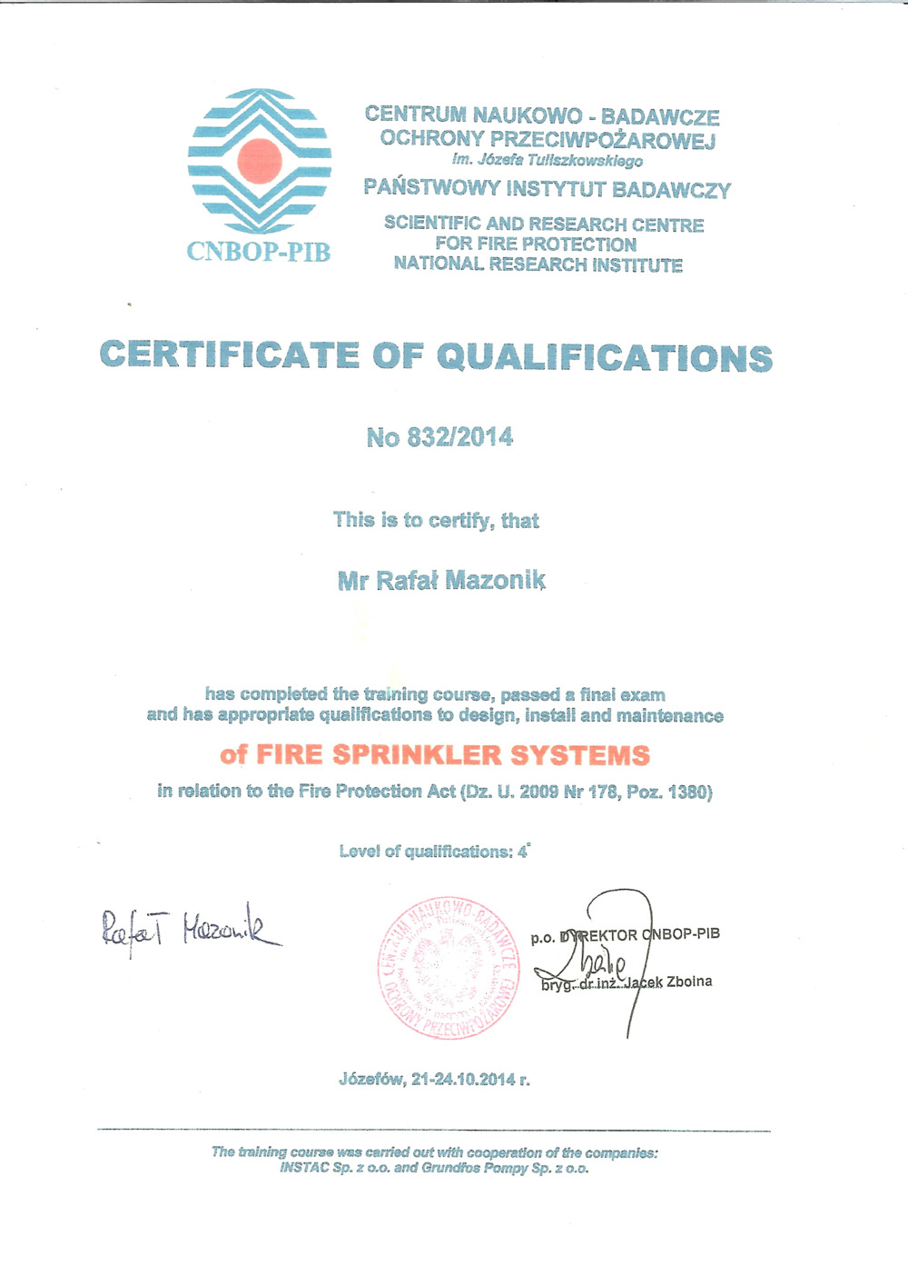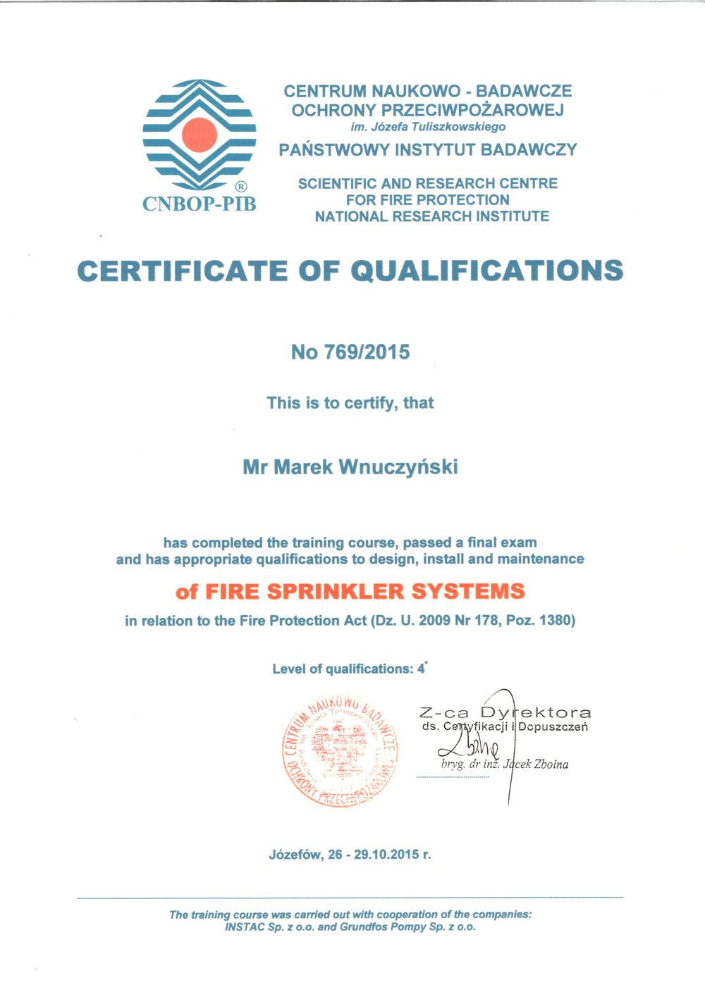 w dziedzinie ochrony przeciwpożarowej i bezpieczeństwa